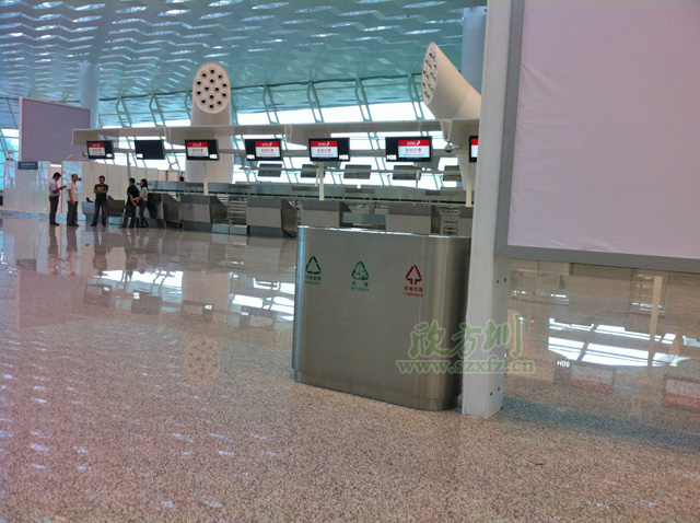 為了裝飾寶安國際機場T3航站樓和GTC大樓的環(huán)境衛(wèi)生,深圳市機場股份有限公司于2013年4月在我公司訂購了2733個垃圾桶,包括有大型不銹鋼垃圾桶、自棄桶、阻燃桶和接水桶等多種材質(zhì)的垃圾桶。