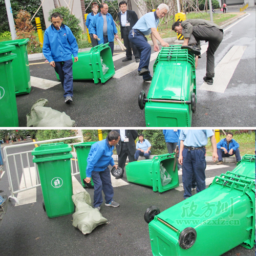 工作人員,塑料垃圾桶分配到各個區(qū)域