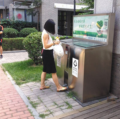 今年初,北京市開始推廣智能垃圾分類回收箱,能自動掃描二維碼并開啟相應垃圾箱,如廚余或者其他垃圾。