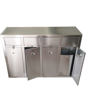 小區(qū)垃圾分類站點四類垃圾分類垃圾桶,不銹鋼無疑是較為理想的材質(zhì)。它戶外防銹蝕效果好,表面金屬光澤高檔美觀,污漬也易清理。不銹鋼分類桶產(chǎn)品款式造型易定制,不受尺寸大小限制,滿足個性化需求,擺放于惠