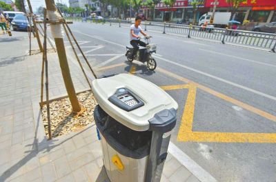 近日,街道馬路上出現新型垃圾桶,在頂蓋煙灰缸旁還有溫度表??吹搅诉@款“高大上”的垃圾桶。它除了頂部安裝帶指針的溫度表外,其他地方與普通垃圾箱無異。