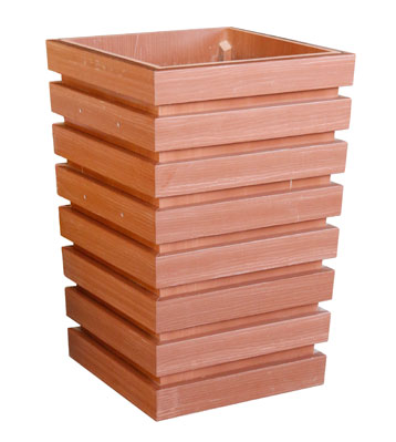 • 產品材質:塑木花箱指木塑復合材料,經擠壓、模壓、注塑成型等塑料加工工藝,生產出的型材制作而成的花箱。
