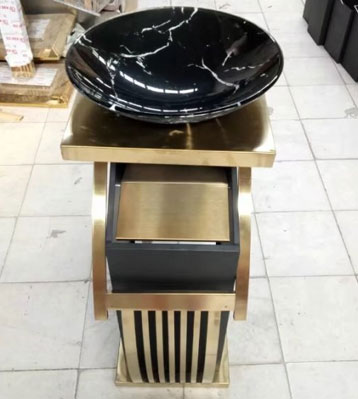 高檔鍍鈦新概念座地煙灰桶批量生產圖