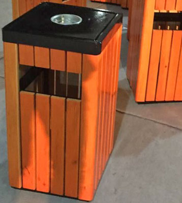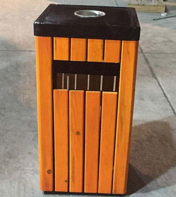 欣方圳戶外鋼木單桶垃圾桶批量生產(chǎn)圖